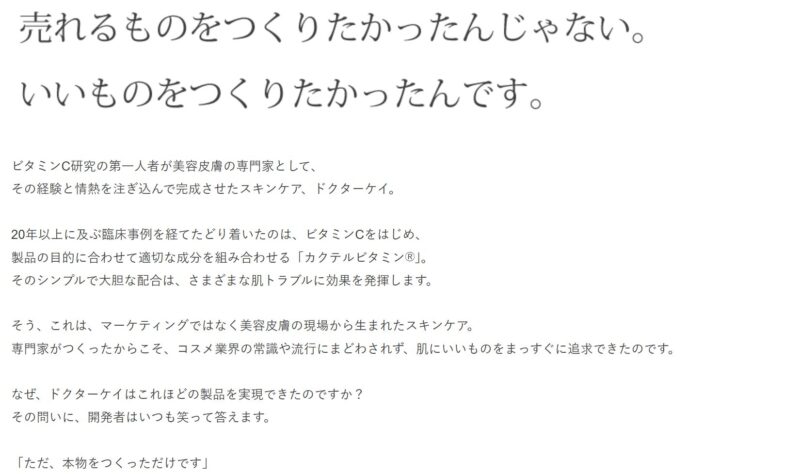 ドクターケイはヒフ科の先生である亀山孝一郎さんが監修された、ビタミンCの「濃度」と「浸透力」に注目した日本のコスメメーカーです。
